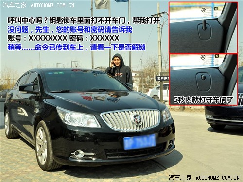 遠(yuǎn)程遙控開(kāi)啟車(chē)門(mén)是用來(lái)幫助那些粗心大意的車(chē)主的,也許把鑰匙誤鎖在車(chē)?yán)锏那闆r你一輩子也不會(huì)遇見(jiàn)幾次(我的同事卻經(jīng)常遇到這種窘境),不過(guò)一旦真的發(fā)生了,你就會(huì)慶幸自己的車(chē)裝配有安吉星系統(tǒng)了。因?yàn)槟阋部梢酝ㄟ^(guò)給安吉星服務(wù)中心打電話,就可以遠(yuǎn)程遙控打開(kāi)車(chē)門(mén)。