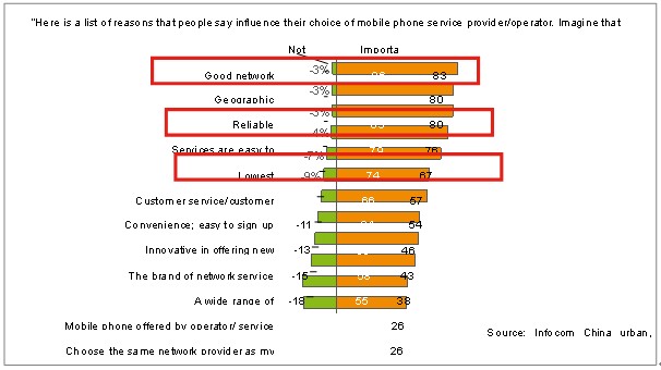 最后,同時(shí)也是最重要的,智能管道可以幫助運(yùn)營(yíng)商提高用戶滿意度并鎖定高端用戶。愛(ài)立信消費(fèi)者研究室針對(duì)終端用戶做過(guò)詳實(shí)的統(tǒng)計(jì)調(diào)查,結(jié)果顯示,對(duì)用戶滿意度影響較大的前5項(xiàng)因素分別是網(wǎng)絡(luò)容量、網(wǎng)絡(luò)覆蓋、業(yè)務(wù)可靠性、業(yè)務(wù)易用性和價(jià)格,參見(jiàn)下圖。