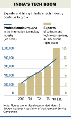 據(jù)印度軟件科技園的官員們介紹,在高科技中心班加羅爾,每周都會有兩三家西方公司的新業(yè)務在此開張,越來越多的公司將從軟件開發(fā)到企業(yè)后勤支持等工作外包給印度。