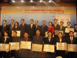 賽迪呼叫榮獲“2005中國最佳外包呼叫中心呼出服務(wù)獎” (第二排正中)