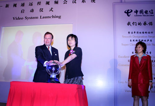 在新聞發(fā)布會儀式上,來自中國電信和北京國賓酒店信息中心的技術人員為來賓們現(xiàn)場演示了這套視頻會議系統(tǒng),國賓酒店安裝的這套全球先進的“新視通”視頻會議系統(tǒng),是一款高檔分體式的會議室型終端服務體系,它可以提供非常靈活可靠及強大的功能,完全可以滿足各種會議室、教室或中小規(guī)模的會議應用環(huán)境。采用專門集成的音響系統(tǒng),利用“新視通”的專利技術,提升了音頻質量。通過雙揚聲器和雙麥克風,可以清晰的聽到每個發(fā)言人的聲音,輕松辨別多個發(fā)言人的同時談話,感受純正、豐滿的音頻質量。與其他運營商推出的視訊業(yè)務相比,