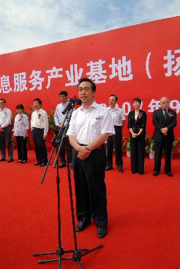 日前,江蘇信息服務(wù)產(chǎn)業(yè)基地(揚(yáng)州)首發(fā)項(xiàng)目開工典禮在廣陵新城隆重舉行,這標(biāo)志著產(chǎn)業(yè)基地建設(shè)邁入了實(shí)質(zhì)性階段。揚(yáng)州市人民政府市長王燕文和天津泰達(dá)公司董事長劉惠文為奠基石揭幕,市委常委、常務(wù)副市長王榮平致賀詞,江蘇省信息產(chǎn)業(yè)廳副廳長龔懷進(jìn)出席了開工典禮。