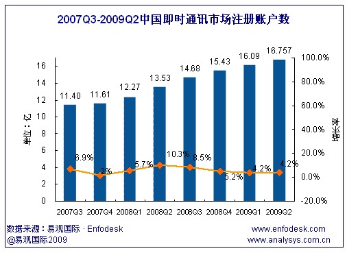 09年2季度中國即時(shí)通訊累計(jì)注冊(cè)賬戶數(shù)達(dá)16.76億