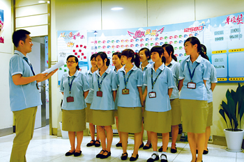 “玉不琢,不成器!彪m說目前社會(huì)的就業(yè)壓力源自于復(fù)雜的社會(huì)原因,可是在客服中心人力資源室的陳依群主管看來,有些還在于80后年輕人的自身原因!斑@些年我做招聘工作以來,看到了一些年輕人抱著希望進(jìn)來以后,因?yàn)槭懿涣藟毫τ滞顺隽。在就業(yè)壓力巨大的情況下,多是獨(dú)生子女的80后一代,還沒有完全樹立起正確的就業(yè)觀和務(wù)實(shí)的工作態(tài)度。我們的原則是,凡是進(jìn)入我們公司的員工和見習(xí)學(xué)生,都要經(jīng)歷嚴(yán)格的培訓(xùn),接受規(guī)范的管理,接受我們公司企業(yè)文化的熏陶。通過見習(xí),我們也發(fā)現(xiàn)了很多真正會(huì)發(fā)光的優(yōu)秀人才!