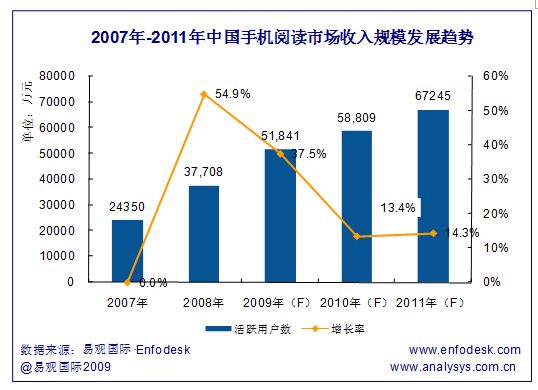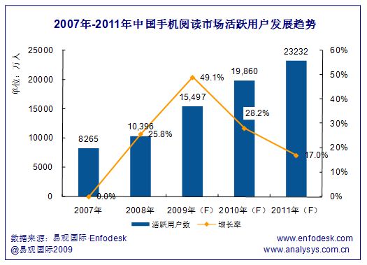 易觀預(yù)測(cè):2010年中國(guó)手機(jī)閱讀活躍用戶數(shù)將達(dá)2億