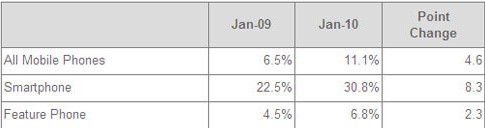 市場(chǎng)調(diào)研機(jī)構(gòu)comScore最新公布的一項(xiàng)數(shù)據(jù)顯示,越來(lái)越多的用戶開始用手機(jī)來(lái)訪問社交網(wǎng)絡(luò),特別是智能手機(jī)用戶。在2010年一月,有30.8%的智能手機(jī)用戶用手機(jī)訪問了社交網(wǎng)絡(luò)。