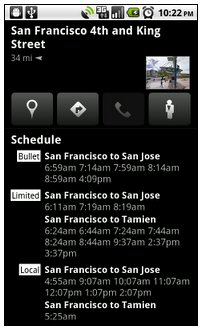 在公共交通地點(diǎn)頁(yè)面中還能看到新版的時(shí)刻表,你可以點(diǎn)擊地圖上的任何一個(gè)中轉(zhuǎn)站點(diǎn)的圖標(biāo)來(lái)打開(kāi)一個(gè)新的頁(yè)面查看未來(lái)車(chē)次的發(fā)車(chē)時(shí)間,這樣可以更好的安排自己的行程,這項(xiàng)功能支持任何提供有在線時(shí)刻表的地鐵、巴士或者火車(chē)車(chē)站。