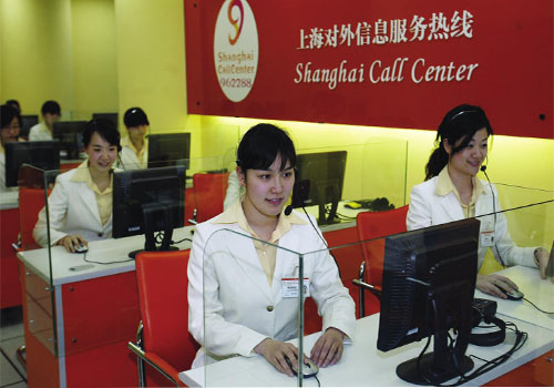 東方網(wǎng)5月1日消息:據(jù)《勞動(dòng)報(bào)》報(bào)道,“Hello。ㄓ⒄Z:你好)”、“GutenTag(德語:你好)!”、“Bonjour(法語:你好)!”……這里就像個(gè)小小的聯(lián)合國,可以聽到15種語言;這里又像“女兒國”,接聽電話的都是80后的姑娘;這里就是上海對外信息服務(wù)熱線962288,365天、24小時(shí)接聽外籍人士的問詢電話。
