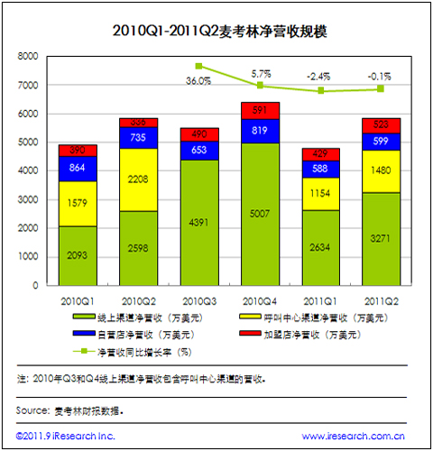 麥考林業(yè)務調整 2011Q2線上渠道凈營收同比增長25.9%