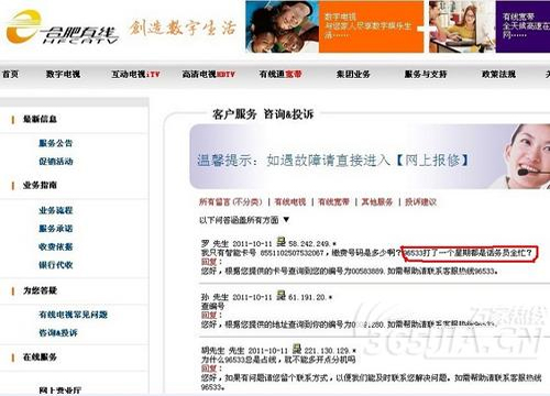 甚至在合肥有線官網(wǎng)上,也有市民反映,自己打96533打了一個(gè)星期都是話務(wù)員全忙。