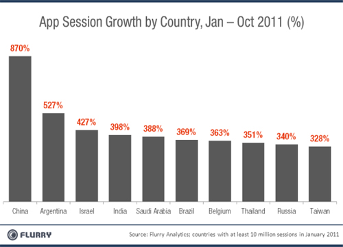 北京時間11月3日消息,據(jù)國外媒體報道,日前,移動應(yīng)用分析網(wǎng)站Flurry發(fā)表分析文章稱,iOS和Android移動應(yīng)用的下載量不斷增加,而中國的移動應(yīng)用下載量和新應(yīng)用需求更是迅猛增長,中國已經(jīng)一躍成為全球第二大移動應(yīng)用市場,全球應(yīng)用開發(fā)者都不可忽視中國市場。