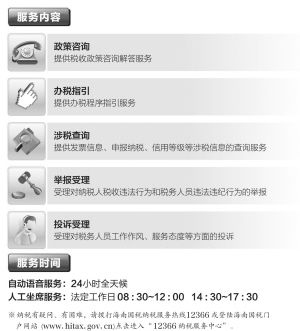 為及時(shí)響應(yīng)納稅人的要求維護(hù)納稅人的權(quán)益,海南省國(guó)家稅務(wù)局于2003年開(kāi)通12366納稅服務(wù)熱線(xiàn),2008年5月12日正式成立12366納稅服務(wù)呼叫中心,在省國(guó)稅局設(shè)立熱線(xiàn)坐席,專(zhuān)門(mén)為納稅人解答涉稅難題。
