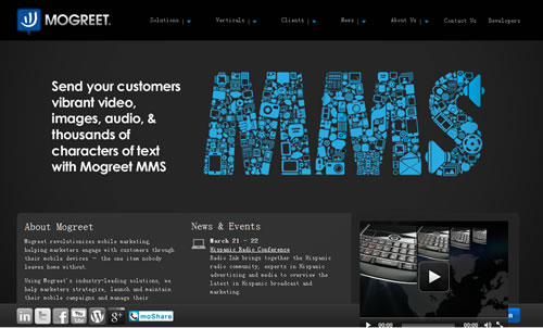 Mogreet是一家為移動(dòng)設(shè)備提供富媒體平臺(tái)服務(wù)的創(chuàng)業(yè)公司,主要通過移動(dòng)設(shè)備向市場營銷人員與客戶之間互動(dòng)提供幫助。幫助他們制定戰(zhàn)略、發(fā)布和維護(hù)移動(dòng)設(shè)備上的活動(dòng)廣告,以及通過Mogreet的客戶關(guān)系管理(CRM)平臺(tái)管理數(shù)據(jù)庫。其開放平臺(tái)為全球170多個(gè)國家近20億客戶的移動(dòng)設(shè)備提供視頻、圖片、音頻以及文本信息服務(wù),目前美國70%的營銷彩信由Mogreet提供。