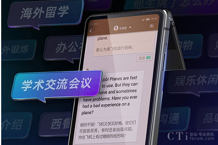 AI教練可以隨時隨地和用戶一對一地聊天,并會將聊天內容用中英文對照的方式顯示在屏幕上,同時還會對用戶的口語發(fā)音進行智能打分。