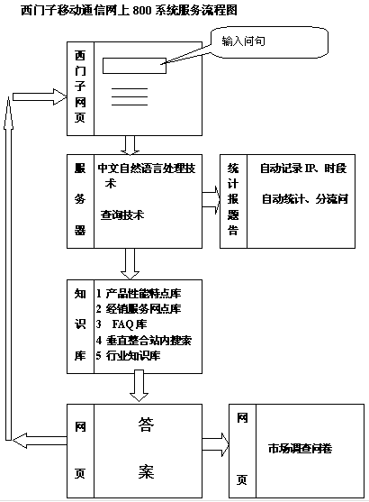 西門子的中文網(wǎng)站開通后,很快就有大量的咨詢郵件通過電子郵件的形式發(fā)過來,開始時基本采用人工回復(fù)的形式,但隨著業(yè)務(wù)的發(fā)展和網(wǎng)絡(luò)的普及,隨之而來的就是顧客的咨詢量的極大豐富,這就帶來客戶服務(wù)的成本大大增加和而服務(wù)也很難標(biāo)準(zhǔn)化、遺漏和延遲回復(fù)的事時有發(fā)生。雖然在不斷的豐富FAQ(常見問題解答),但當(dāng)FAQ多了,又直接給顧客的查找?guī)砝щy,客戶服務(wù)人員又加上了對知識庫的全文檢索功能,但很快就發(fā)現(xiàn)全文檢索無論是在查詢精度還是查詢面上都有一定的局限,而且顧客在鍵入關(guān)鍵字時經(jīng)常采用自然語言,很多時候全文檢索無法支持。同時,公司的營銷和客戶人員也特別希望能收集到客戶的訪問記錄,在這些需求的推動下,西門子構(gòu)建了現(xiàn)在的網(wǎng)上800服務(wù)系統(tǒng),作為其CRM體系中重要的環(huán)節(jié)。