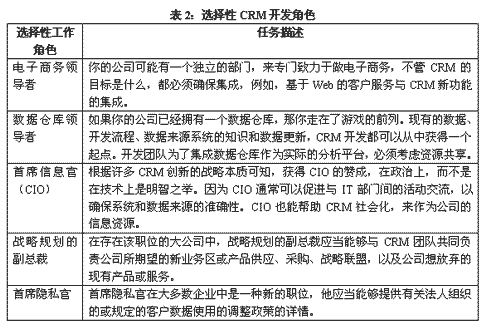 表2:選擇性CRM開發(fā)角色