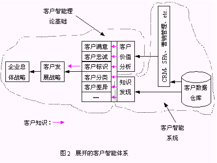 Smith將客戶智能與客戶分析等同起來。BO公司的Paul Clark在分析客戶智能與CRM的關(guān)系時認(rèn)為:客戶智能是CRM的智慧所在(the