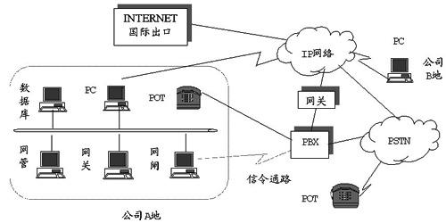 一般大企業(yè)具有自己的VPN網(wǎng)絡(luò),而且每一個分公司均有發(fā)達(dá)的計算機(jī)局域網(wǎng)和PBX資源,此時應(yīng)充分利用這兩種資源。通過這種網(wǎng)絡(luò)結(jié)構(gòu),企業(yè)建立了內(nèi)部虛擬計算機(jī)、電話、傳真網(wǎng)絡(luò),大大節(jié)省了公司內(nèi)部電話傳真的費(fèi)用,實(shí)際上是把長途費(fèi)用變成了虛似本地網(wǎng)業(yè)務(wù)費(fèi)用(但長途線路仍需租用),有時,企業(yè)的PBX可以直接連到Internet上,這樣可繞過收費(fèi)偏貴的本地網(wǎng)PSTN部分,這樣的網(wǎng)絡(luò)設(shè)計對大企業(yè)來說有較大的自主性。