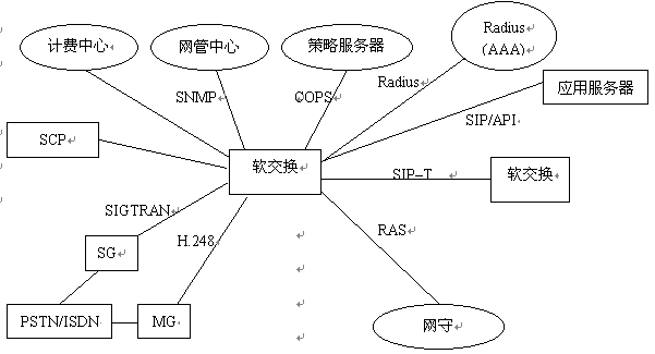 圖2 軟交換系統(tǒng)結(jié)構(gòu)示意圖