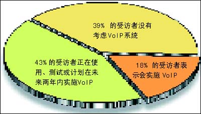 該調(diào)查收集了全球254名高級管理人員對未來企業(yè)網(wǎng)絡(luò)的意見和看法。其中,43%的受訪者表示,他們正在使用、測試或計劃在未來兩年內(nèi)實施VoIP;另外 18% 的受訪者表示,從長遠的角度來講,他們會實施 VoIP。市場預測也顯示相同的樂觀前景。研究機構(gòu)Gartner Dataquest預期到2008年,公用電話交換網(wǎng) (PSTN) 的零售語音收入將輕微下跌,而VoIP的零售收入則上升 38.6%。