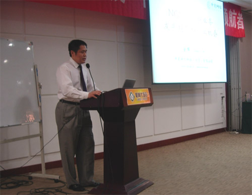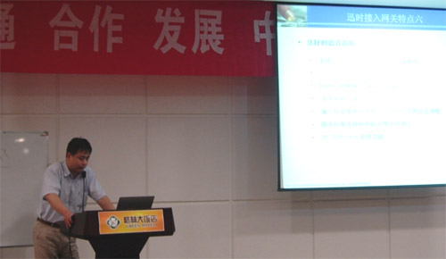 國人通信項(xiàng)目經(jīng)理陸寧在演講