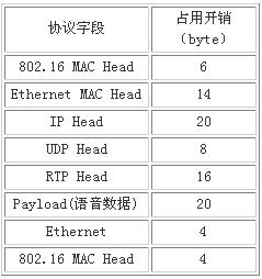 K,其實(shí)際映射到WIMAX空口的整個(gè)過程是需經(jīng)很多次封裝。各種封裝協(xié)議所額外占用的開銷,如表1所示。