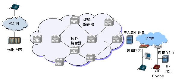 圖1 VoIP承載網(wǎng)絡(luò)體系架構(gòu)示意圖