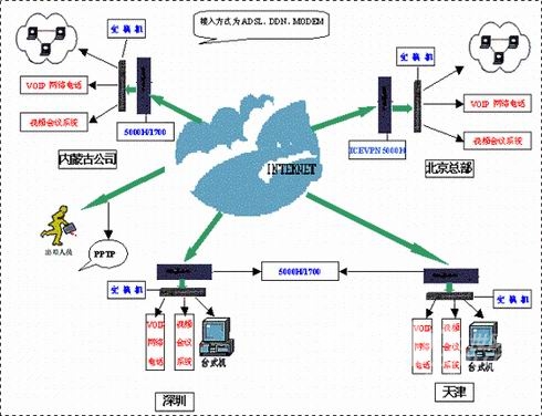 規(guī)模如此龐大的餐飲公司,隨著業(yè)務(wù)的迅速發(fā)展,公司不斷面臨著管理分支機(jī)構(gòu)的成本、覆蓋范圍和信息安全的巨大壓力,長(zhǎng)期巨額的電話費(fèi)用,也是公司一筆不小的開支。因此,公司迫切需要一種異地安全互聯(lián)的方案,上傳財(cái)務(wù)數(shù)據(jù),并且要將辦公數(shù)據(jù)和財(cái)務(wù)數(shù)據(jù)分離開來。同時(shí)在此基礎(chǔ)上,要設(shè)法降低電話費(fèi)用。