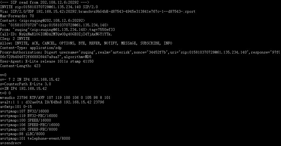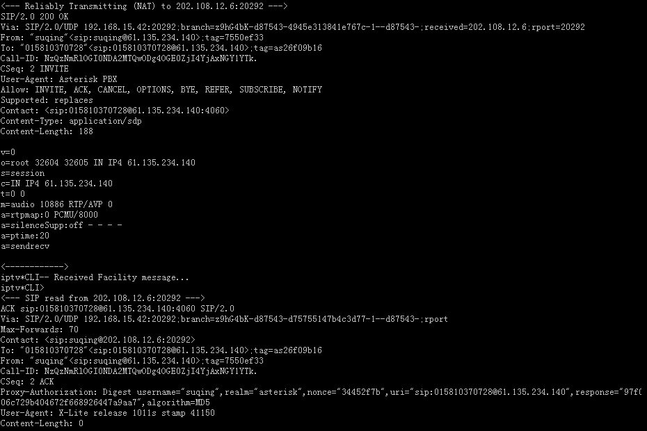 Asterisk PBX 針對上面的分析情況,響應(yīng)X-Lite會(huì)話繼續(xù)下去: