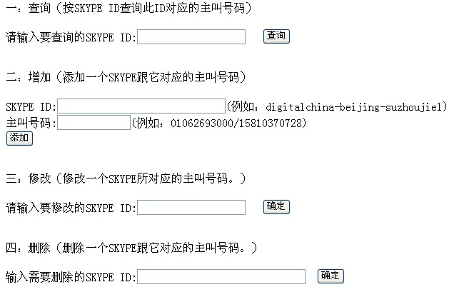 1.增加一個針對終端用戶賬戶ID的綁定管理系統(tǒng),如圖用戶在第二項中輸入自己的賬戶ID,然后再輸入想要作為來顯示的主叫號碼完成綁定操作,后臺php程序向數據庫中插入一條新記錄(X-Lite