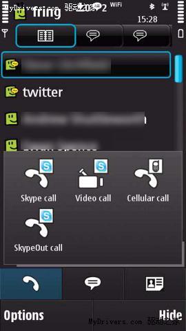 Fring是一款免費(fèi)的手機(jī)VoIP軟件,用戶(hù)可以使用這款軟件通過(guò)3G、EDGE、GPRS或WiFi連接網(wǎng)絡(luò),把Skype、MSN Messenger、Google Talk及ICQ等即時(shí)通訊系統(tǒng)中的好友整合到一個(gè)好友列表中,然后和他們打VoIP 電話(huà)或進(jìn)行即時(shí)通信。今天Fring宣布開(kāi)始支持Symbian智能手機(jī)使用該軟件和好友進(jìn)行視頻通話(huà)功能。