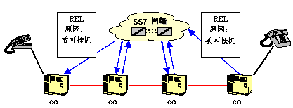下面圖示SS7信令系統(tǒng)的呼叫流程: