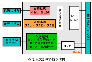 H.323是最早被采納的VoIP標準。H.323協(xié)議體系規(guī)定了基于分組網(wǎng)進行兩點/多點實時媒體通信的系統(tǒng)邏輯組件、消息定義和通信過程。