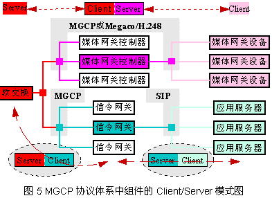 Gateway Controller)通過MGCP或Megaco/H.248構(gòu)成服務器/客戶端關系,而媒體網(wǎng)關控制器有作為服務器同樣通過MGCP等協(xié)議控制媒體網(wǎng)關設備(Media
