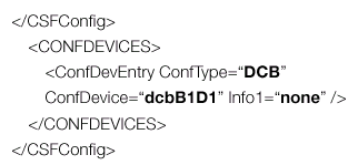 它由三個(gè)要素組成――CSFConfig、CONFDEVICES和ConfDevEntry。前兩個(gè)要素只用于為解析和數(shù)據(jù)收集過程中的每個(gè)ConfDevEntry提供環(huán)境。CONFDEVICES要素用于確定值所駐留的STL容器,容器(CONFDEVICELIST)的每個(gè)節(jié)點(diǎn)都包含一個(gè)對象,對象的成員變量名稱類似于XML文件中的屬性名稱――如ConfType、ConfDevice、Info1等等。成員變量的值將為屬性的值――DCB、dcbB1D1、及空值。