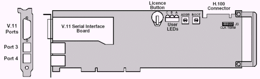 帶串行接口的板卡提供兩個同步串行接口。兩個接口通過同一個26針高密度D型接頭連接,電氣特性使用V.11(兼容V.35)接口特性。
