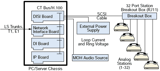 DSPs 直接有PCM連接到CTbus ASIC, 它提供SCbus/CTbus(H.100)和模擬座席接口之間PCM交換的功能.