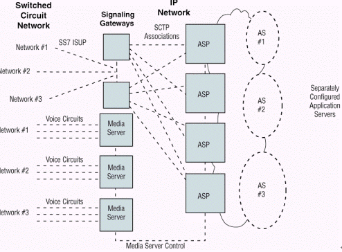 SCTP和應(yīng)用層軟件,如MTP3用戶適配層 (M3UA),以及標(biāo)準(zhǔn)的七號信令用戶端軟件,如ISUP、移動應(yīng)用部分 (MAP)、或者智能網(wǎng)應(yīng)用部分