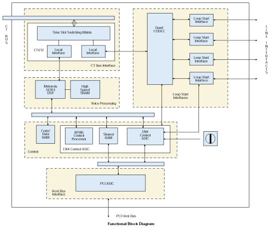 信令數(shù)據(jù)(摘機/掛機、振鈴、呼叫方ID等等)傳送到板內(nèi)控制處理器,并且通過雙端口共享RAM和主機PCI總線發(fā)送到應用程序。
