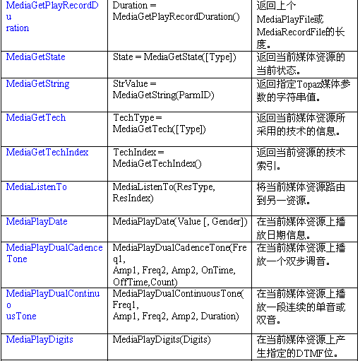 控制媒體資源的函數(shù)如下: