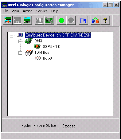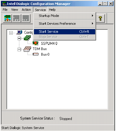 Dialogic系統(tǒng)是啟動不了的。同樣,你也無法從控制面板啟動Dialogic Dialogic 系統(tǒng)且打開DCM。如果你需要檢測設備,請使用DCM的Action